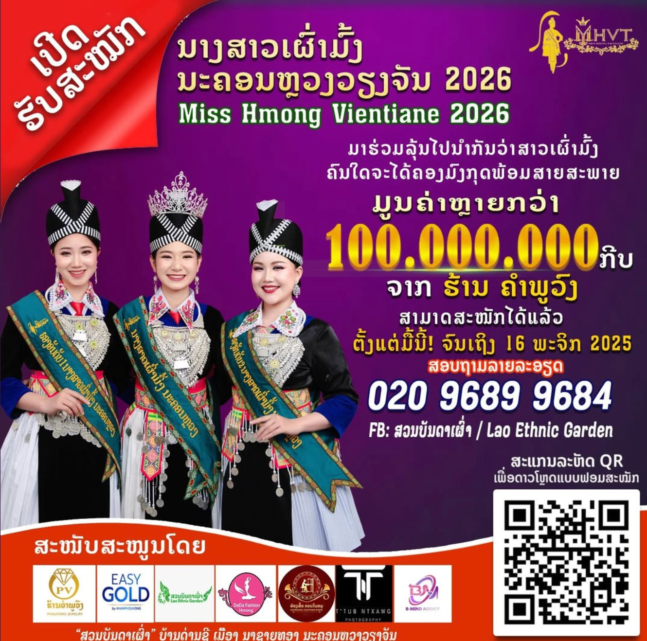 👑✨ເວທີອັນຊົງກຽດຂອງສາວເຜົ່າມົ້ງ ️Miss Hmong Vientiane 2026 ຈະໄດ້ຮັບເງິນລາວັນມົງກຸດ ສາຍສະພາຍ ມູນຄ່າ 100,000,000 ກີບ. ຢ່າລືມສະໝັກ ຄົນຕໍ່ໄປອາດເປັນເຈົ້າ?